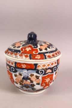 A 20TH CENTURY JAPANESE IMARI PORCELAIN BOWL & COVER - 17cm high.