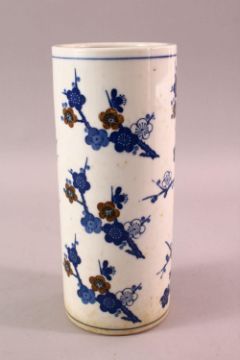 A CHINESE BLUE & WHITE PORCELAIN PRUNUS VASE, 25cm.