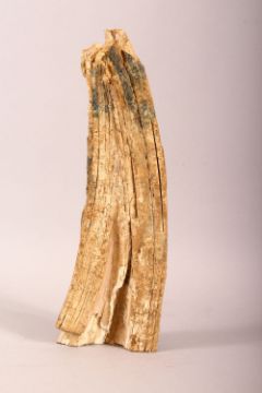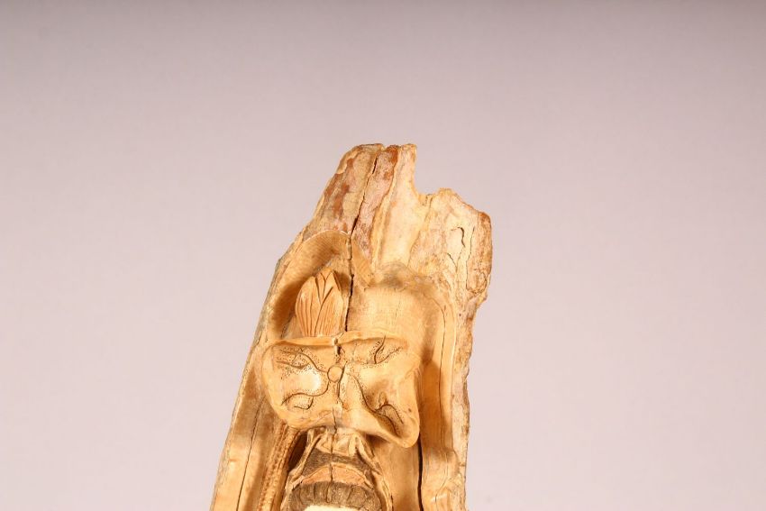 A CHINESE CARVED & STAINED IVORY FRAGMENT OF GUANYIN, the fragment carved to the front depicting the goddess guanyin holding an array of flora, 32cm x 10 cm
