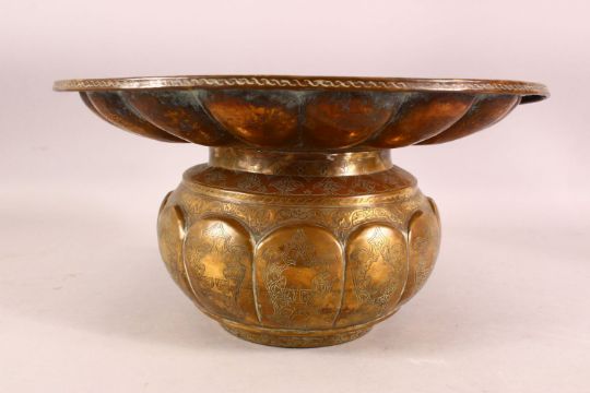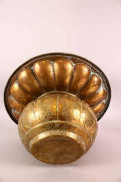 A LARGE 18TH/19TH CENTURY PERSIAN BRASS BASIN, with hinged lid, 37cm diameter.