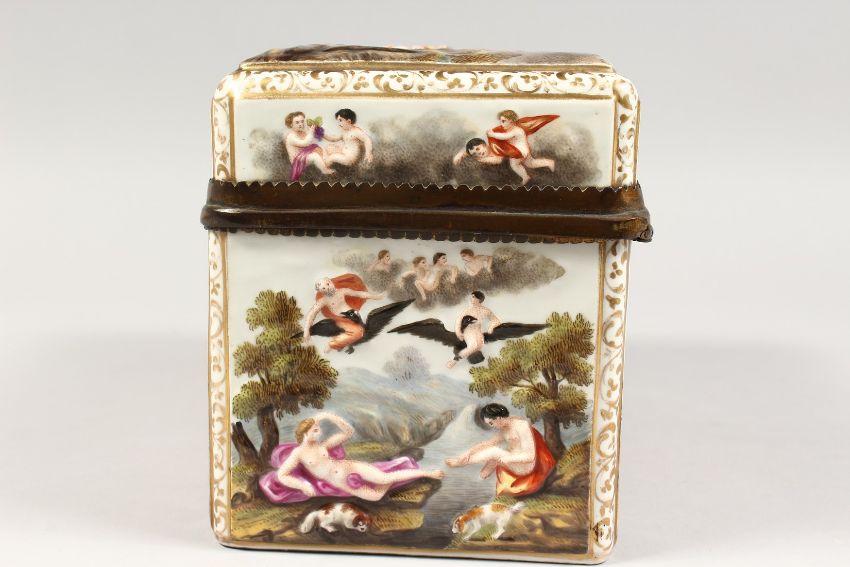 A GOOD CAPODIMONTE CASKET with classical figures in relief