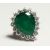A SUPERB 18CT WHITE GOLD, PEAR CUT EMERALD AND DIAMOND RING set with a large emerald surrounded by sixteen diamonds.