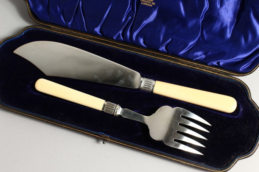 A PAIR OF SILVER PLAIN CASED FISH SERVERS