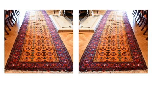 A PAIR OF ANTIQUE HAMADAN-KURD KELLAI RUNNERS. 13ft x 3ft 6ins.