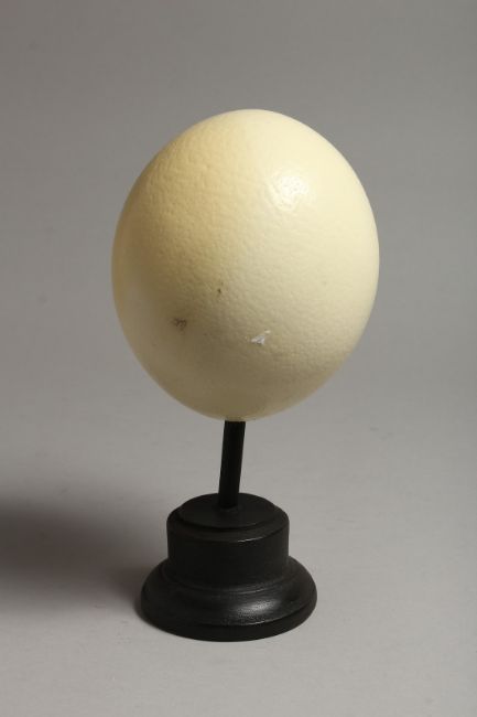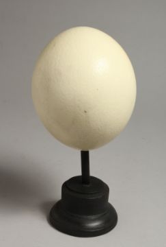 AN OSTRICH EGG, mounted on a circular base