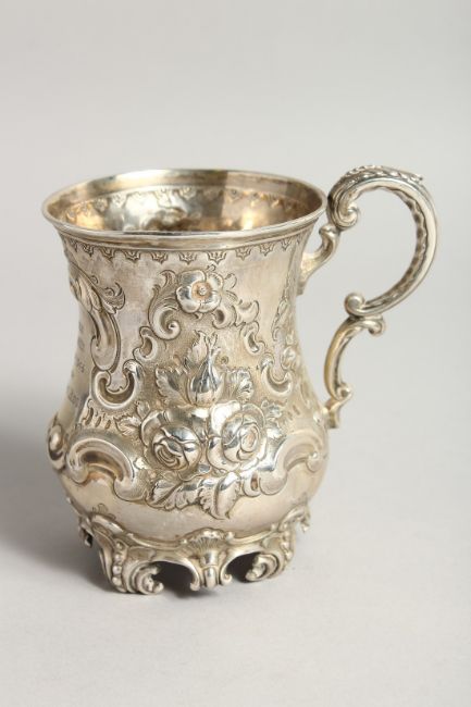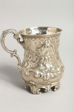 A VICTORIAN SILVER MUG with repousse decoration