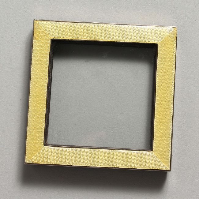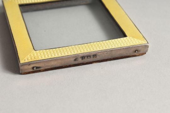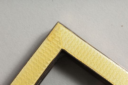 A SQUARE SILVER AND YELLOW GUILLOCHE ENAMEL PHOTOGRAPHY FRAME