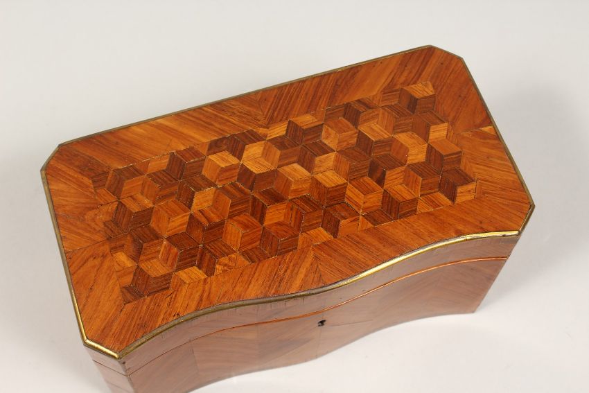 A 19TH CENTURY FRENCH KINGWOOD SERPENTINE-FRONTED TWO DIVISION TEA CADDY