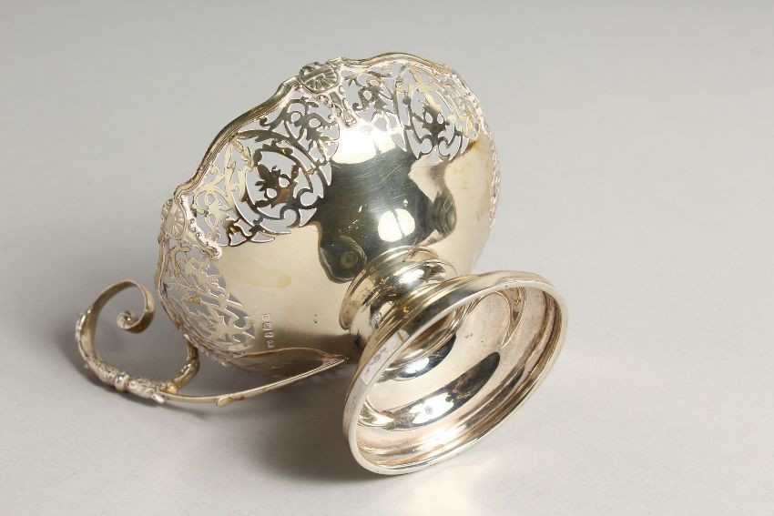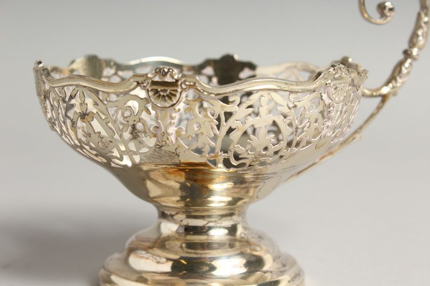 A PIERCED CIRCULAR BON-BON DISH with curving handle