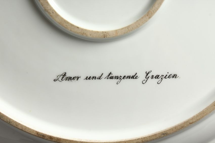 A SUPERB LARGE VIENNA OCTAGONAL DISH "Amor und tanzende grazien"