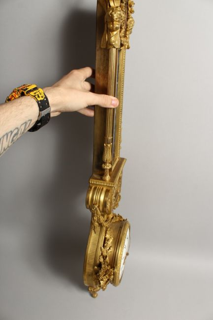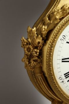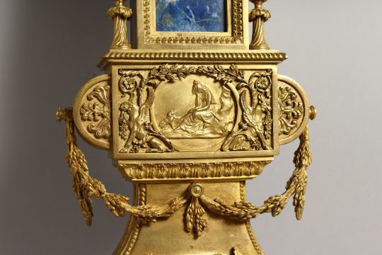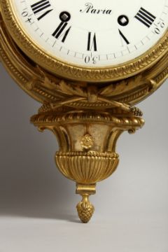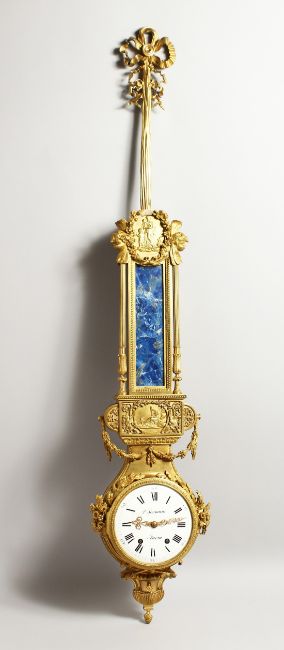 A SUPERB PAUL SORMANI A PARIS, ORMOLU AND LAPIS WALL CLOCK with 6.25in dial, garlands and flowers, classical figures, ribbons etc.