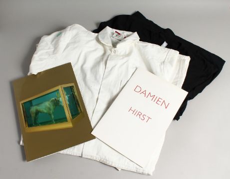 DAMIEN HIRST. A BOILER SUIT, T-SHIRT, AND CATALOGUES