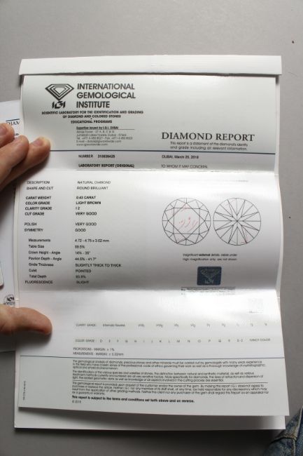 A 0.43 CARAT DIAMOND with a certificate