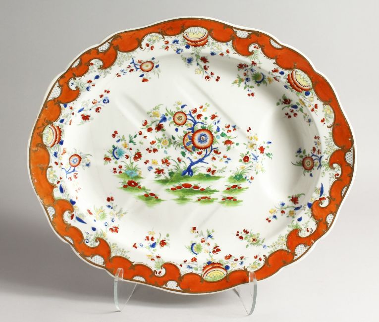 A LARGE FLORAL DECORATED TREE AND WELL CARVING DISH