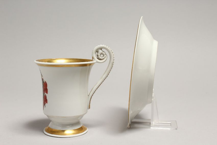 A BERLIN PORCELAIN CUP AND SAUCER, the cup with a crest.