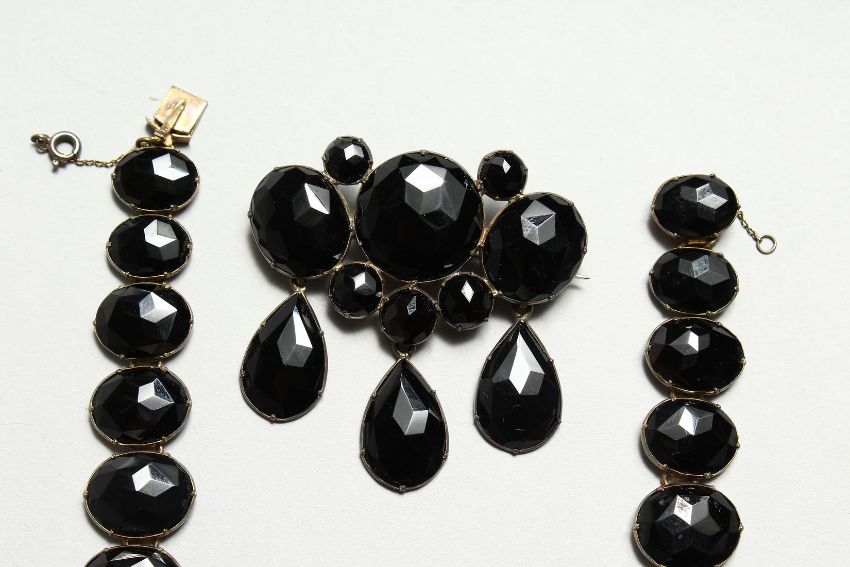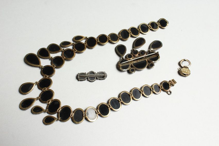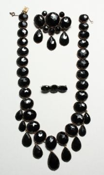 A CONTINENTAL FACET CUT NECKLACE, BROOCH AND EARRINGS in an original case, JULIUS WENNERSTROM, SODERTALIB