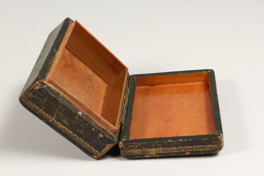 A GOOD LEATHER BOX with Pietra Dura inlaid top.