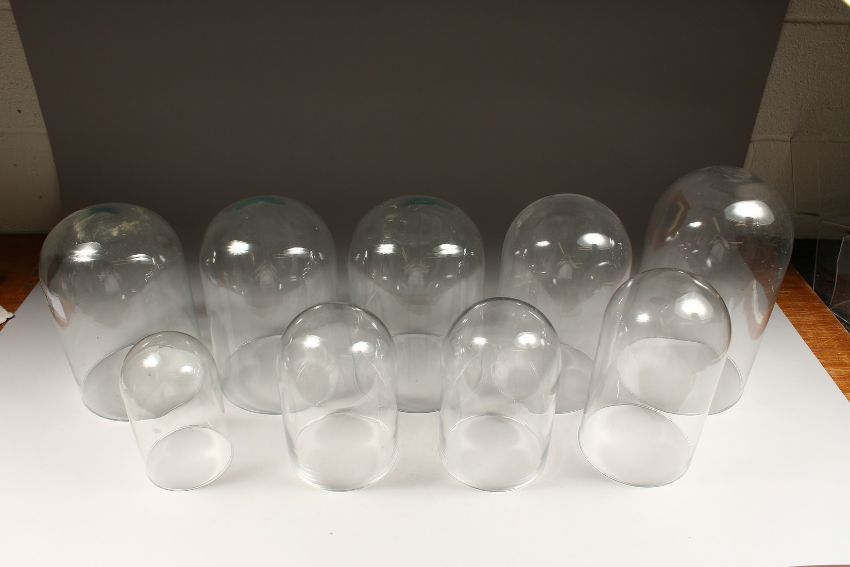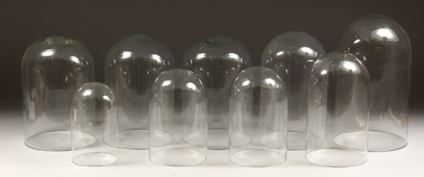 A COLLECTION OF NINE VICTORIAN GLASS DOMES.