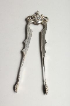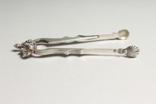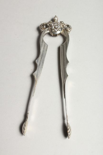 AN ORNATE PAIR OF CONTINENTAL SILVER SUGAR TONGS