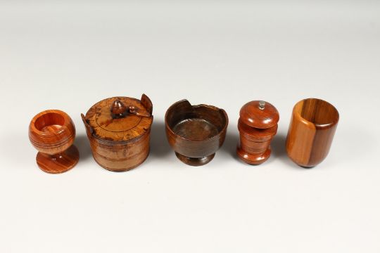 FIVE PIECES OF TREEN including a bowl and cover (4)