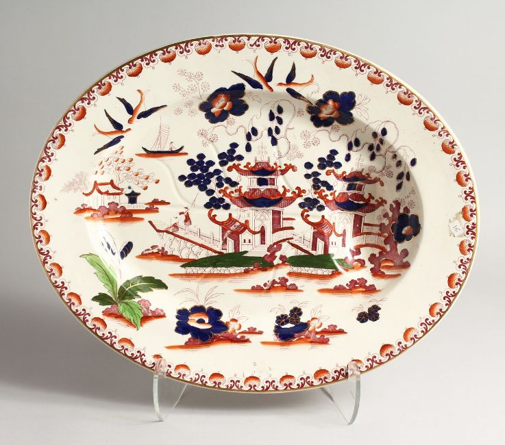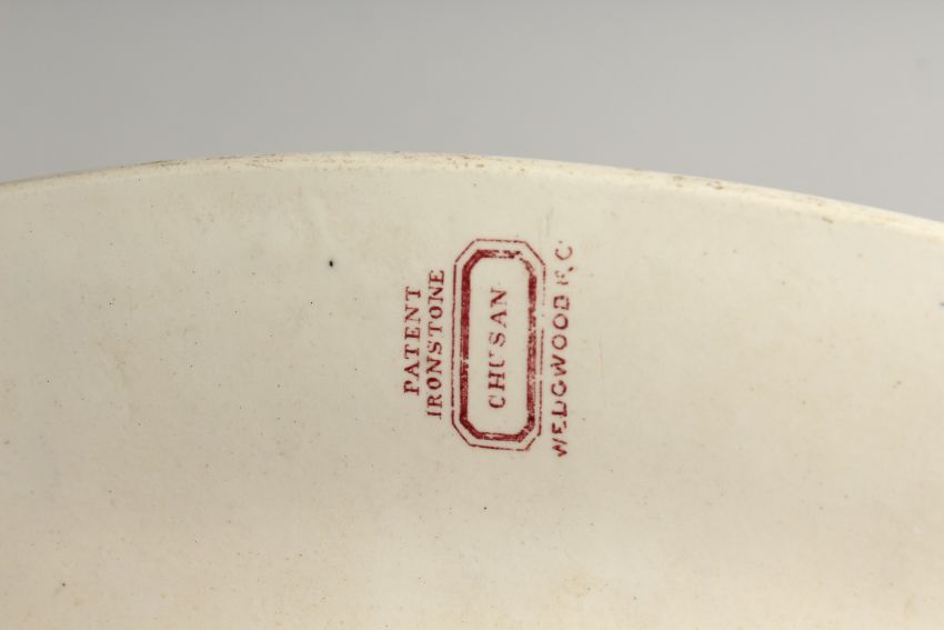 A LARGE WEDGWOOD 'CHUSAN' PATTERN, IRONSTONE TREE AND WELL CARVING DISH.