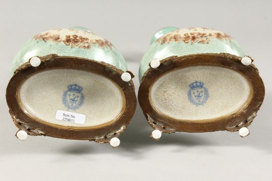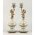 A PAIR OF CONTINENTAL PORCELAIN CUPID CANDLESTICKS on gilt bases.