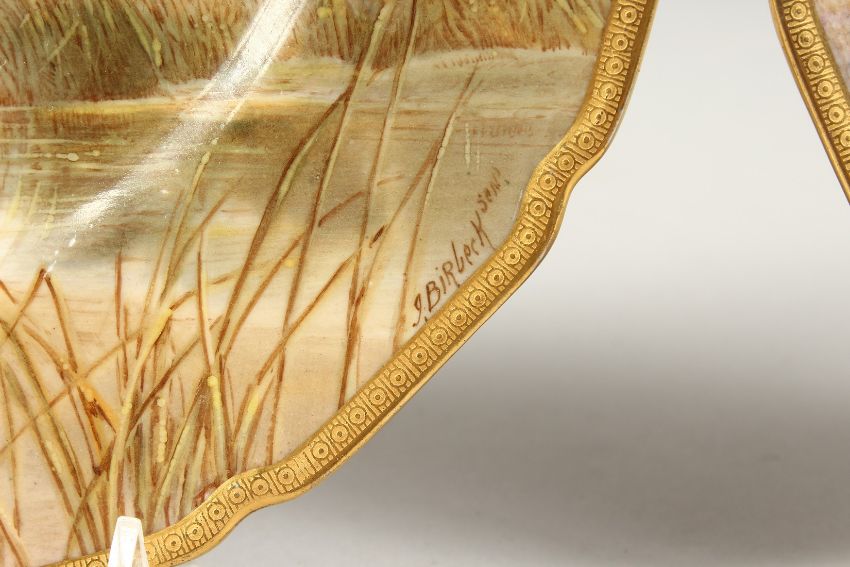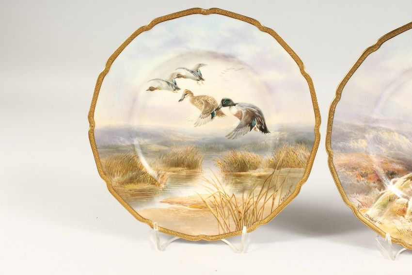 A PAIR OF ROYAL DOULTON PORCELAIN PLATES painted with birds