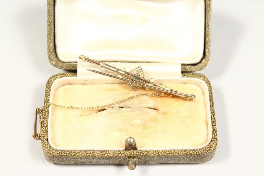 A GOOD AQUAMARINE AND SEED PEARL BAR BROOCH