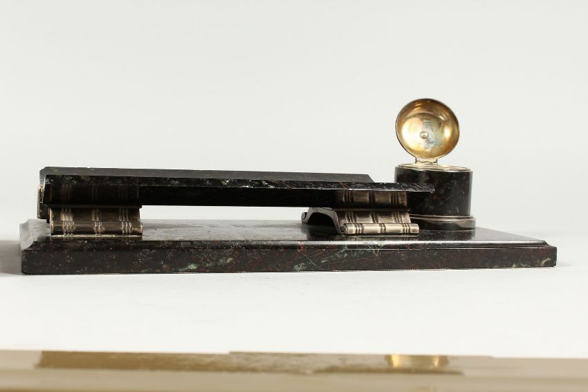 A VERY GOOD ART DECO MARBLE DESK SET.