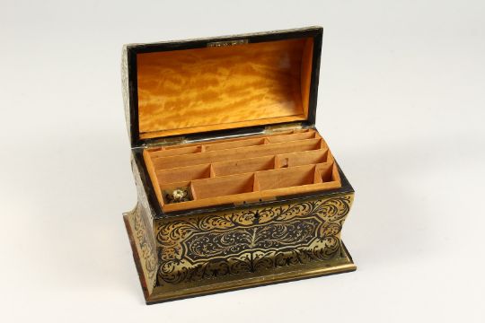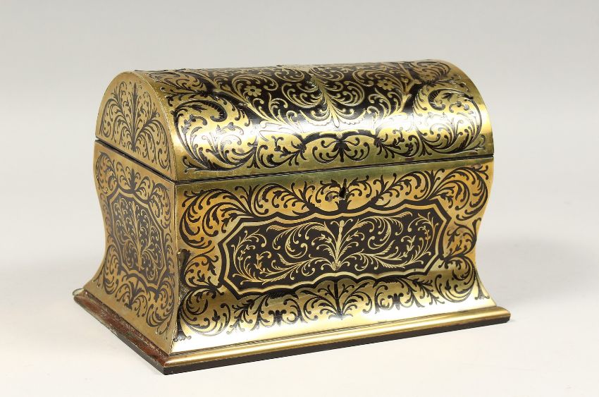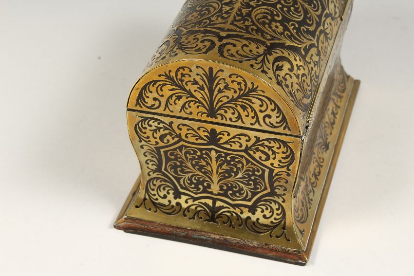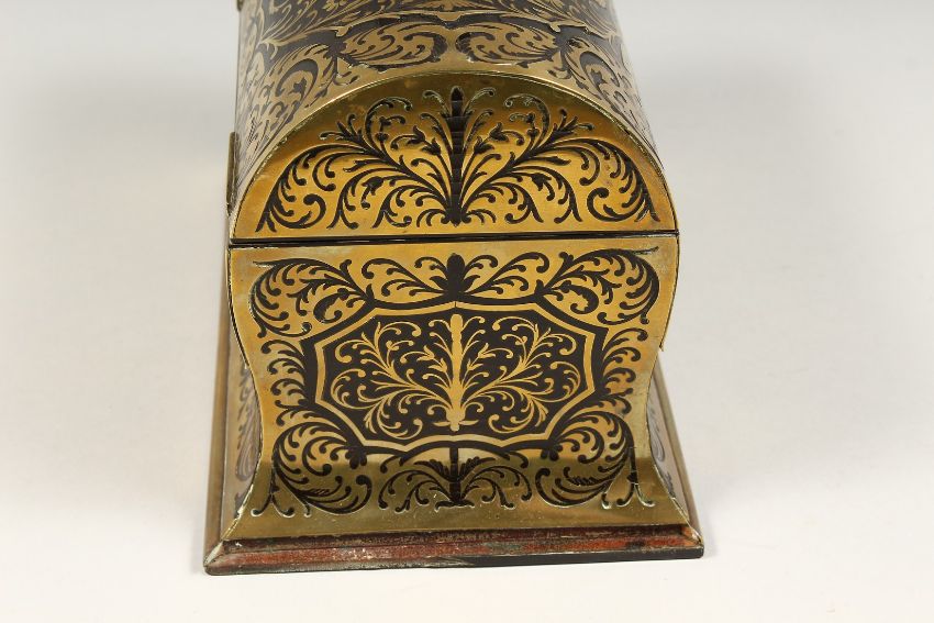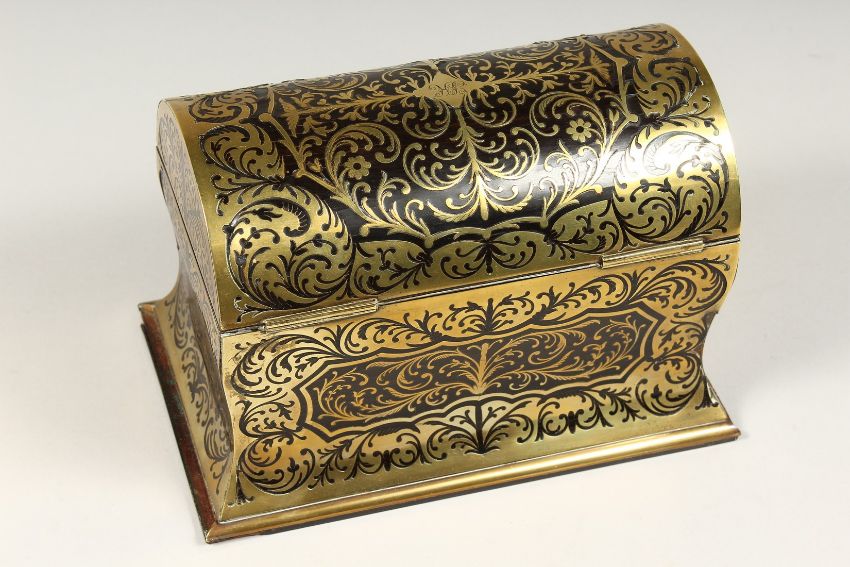 A 19TH CENTURY FRENCH BOULLE DOMED TOP STATIONARY BOX, with fitted interior