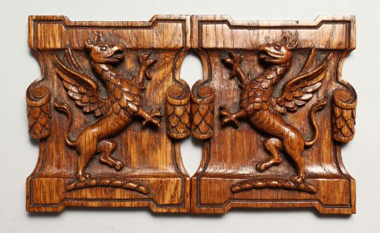 A PAIR OF TREEN CARVED DRAGON PLAQUES
