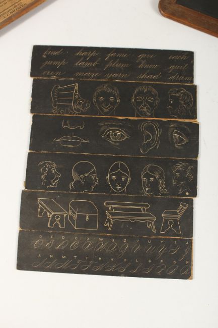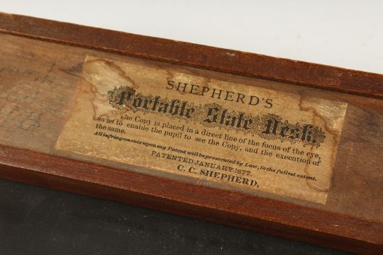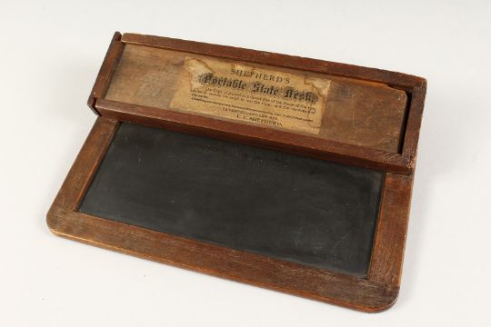 SHEPHERDS PORTABLE SLATE DESK, double sided, free standing, table top with storage compartment.
