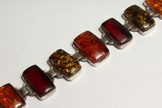A SILVER AND AMBER BRACELET