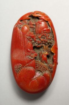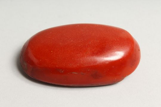 A CHINESE CARVED OVAL STONE PEBBLE