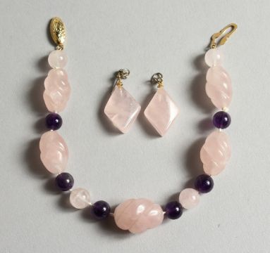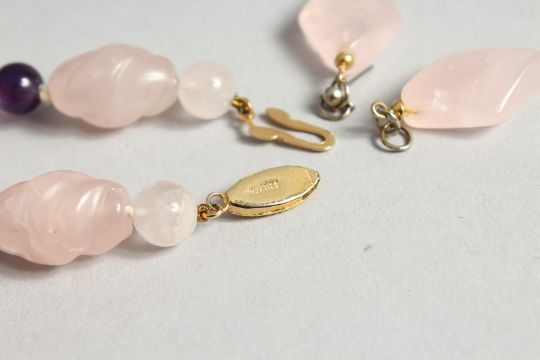 A ROSE QUARTZ AND AMETHYST BRACELET AND EARRINGS
