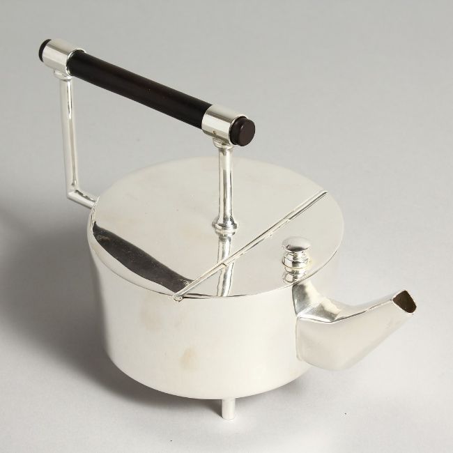 A CHRISTOPHER DRESSER DESIGN PLATED CIRCULAR TEA POT