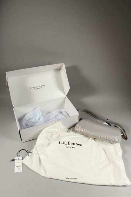 A GOOD L. K. BENNETT GREY HANDBAG with dust cover and box, as new.