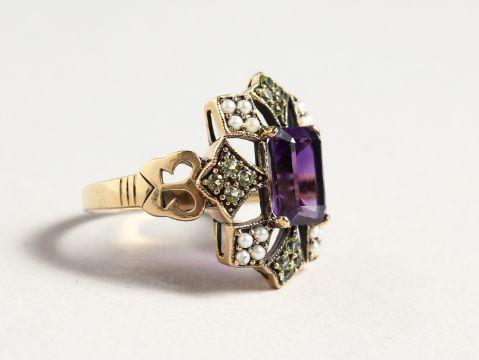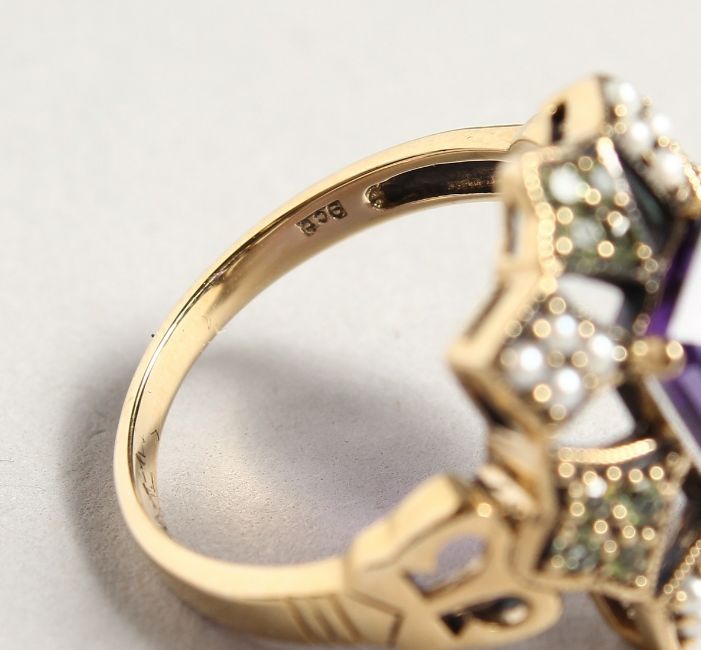 A 9CT GOLD SUFFRAGETTE STYLE RING