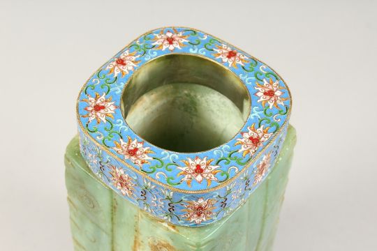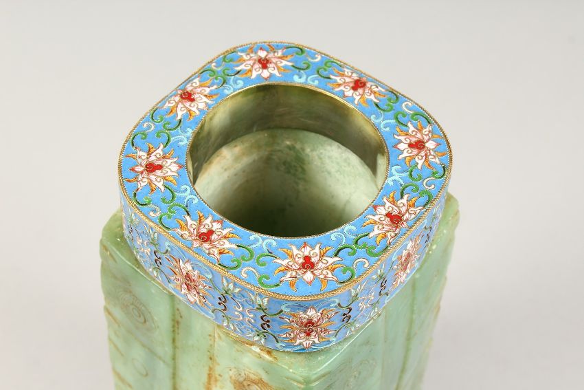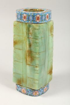 A SUPERB LARGE RUSSIAN JADE AND CLOISSONE ENAMEL VASE