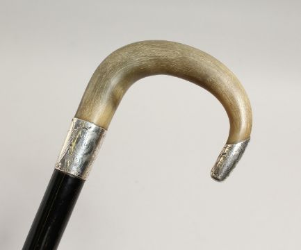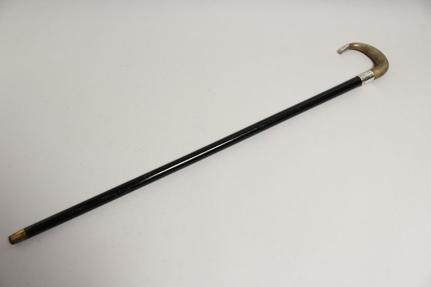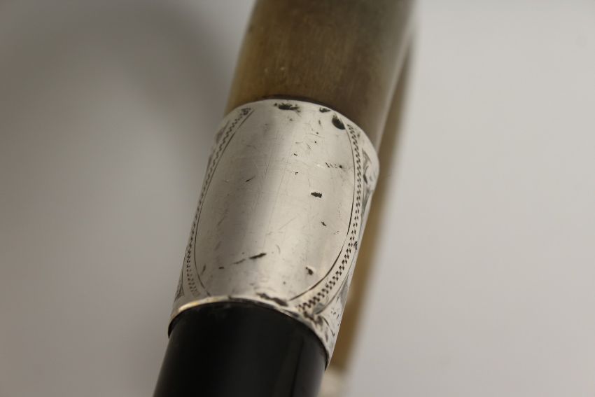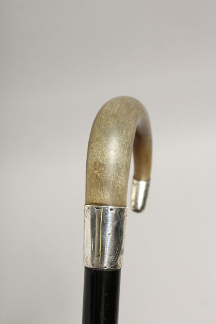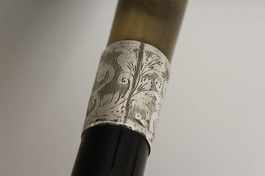 A SILVER MOUNTED WALKING STICK, late 19th / early 20th Century, the handle rhino horn