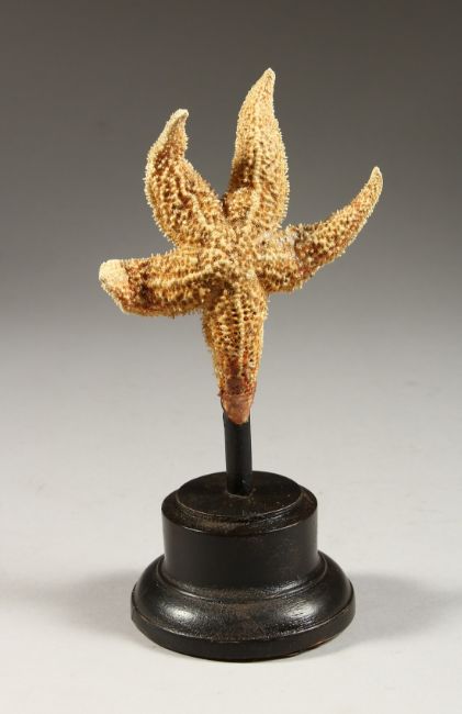 A SMALL STARFISH mounted on a circular base.