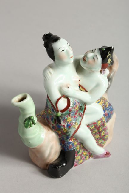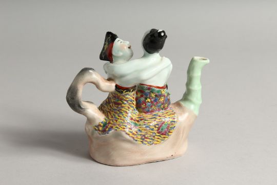 A SMALL CHINESE PORCELAIN EROTIC TEA POT