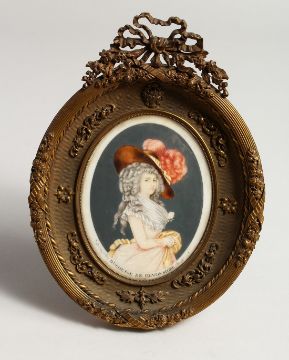 A SUPERB OVAL FRAMED PORTRAIT OF DUCHESSE DE DEVONSHIRE.