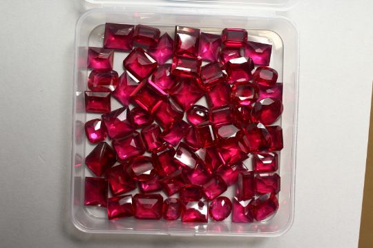 A BOX OF RUBY BUFF STONES