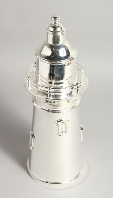 A PLATED TAPERING LIGHTHOUSE COCKTAIL SHAKER