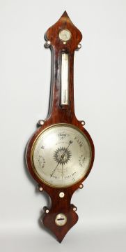 A LARGE REGENCY ROSEWOOD BANJO BAROMETER by a FAGIOLI & SON. 3 Great Warner Street, Clerkenwell