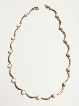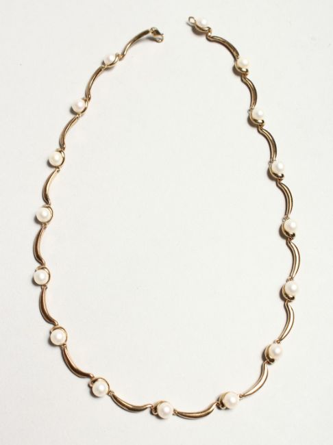 A 9CT. GOLD YELLOW GOLD AND PEARL NECKLACE