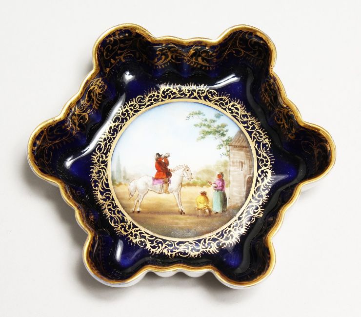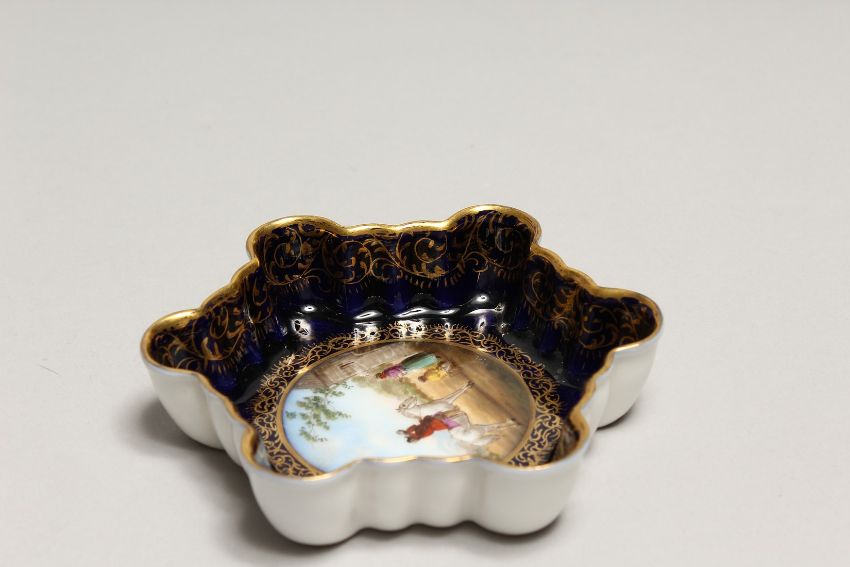 A VIENNA PORCELAIN BOWL AND COVER, apple finial.