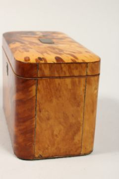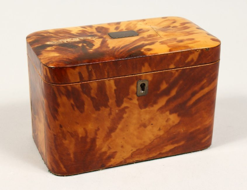 A GOOD REGENCY TORTOISESHELL TWO DIVISION TEA CADDY of rectangular form.