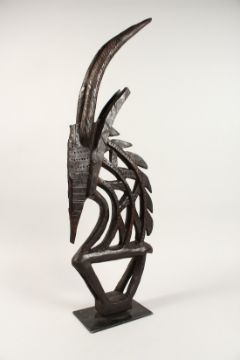A CARVED AND PIERCED WOODEN GOAT'S HEAD/ ANTELOPE ORNAMENT